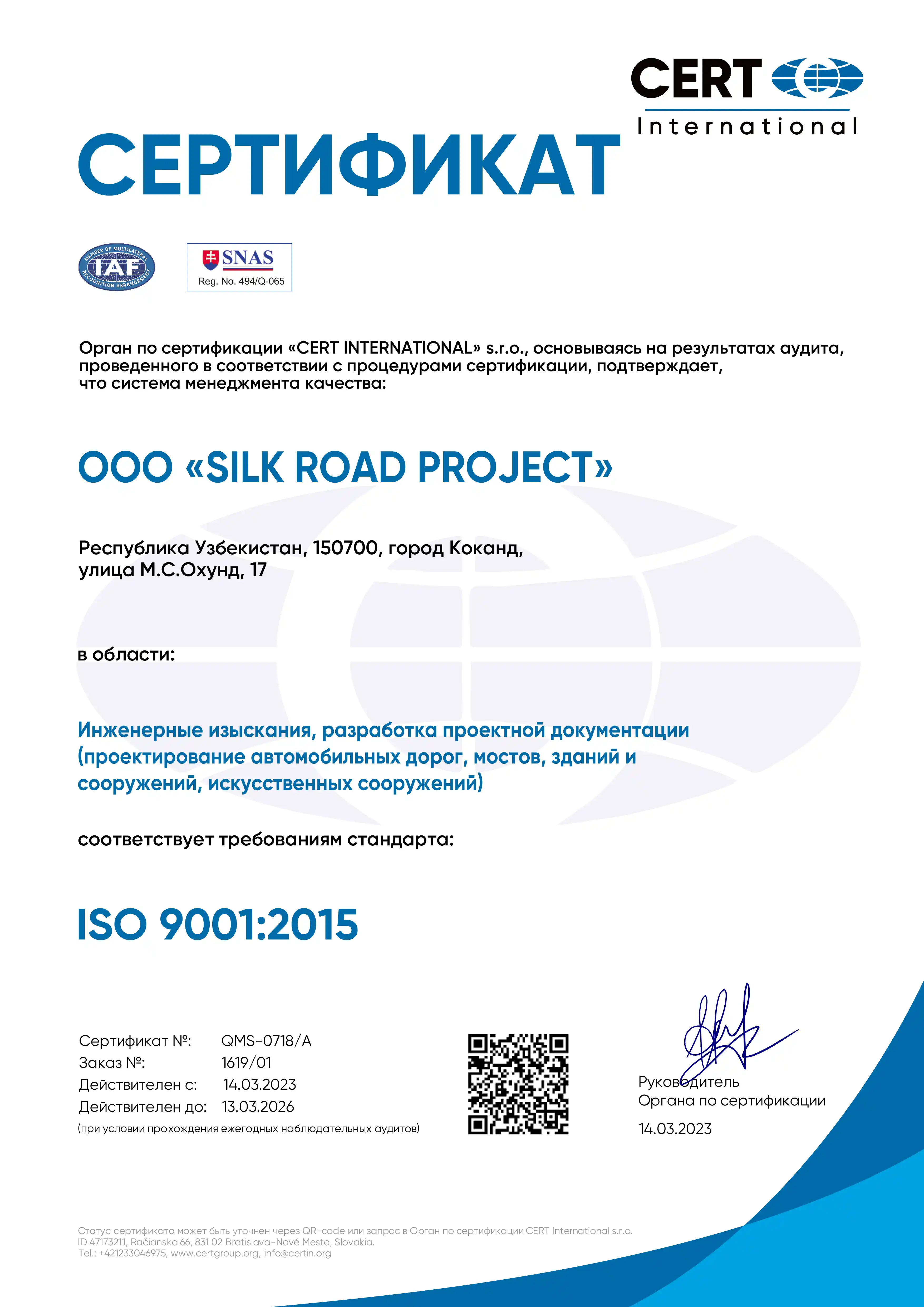 Xozirgi davrda tashkilot Xalqaro axamiyatga ega boʼlgan M-41 “Bishkek-Dushanbe-Termiz” avtomobil yoʼlining 1459-1485 km qismini rekonstruktsiya qilish, koʼprik va boshqa yoʼl xoʼjaligi obʼektlarini loyixalashtirishda faol ishtirok etmokda.