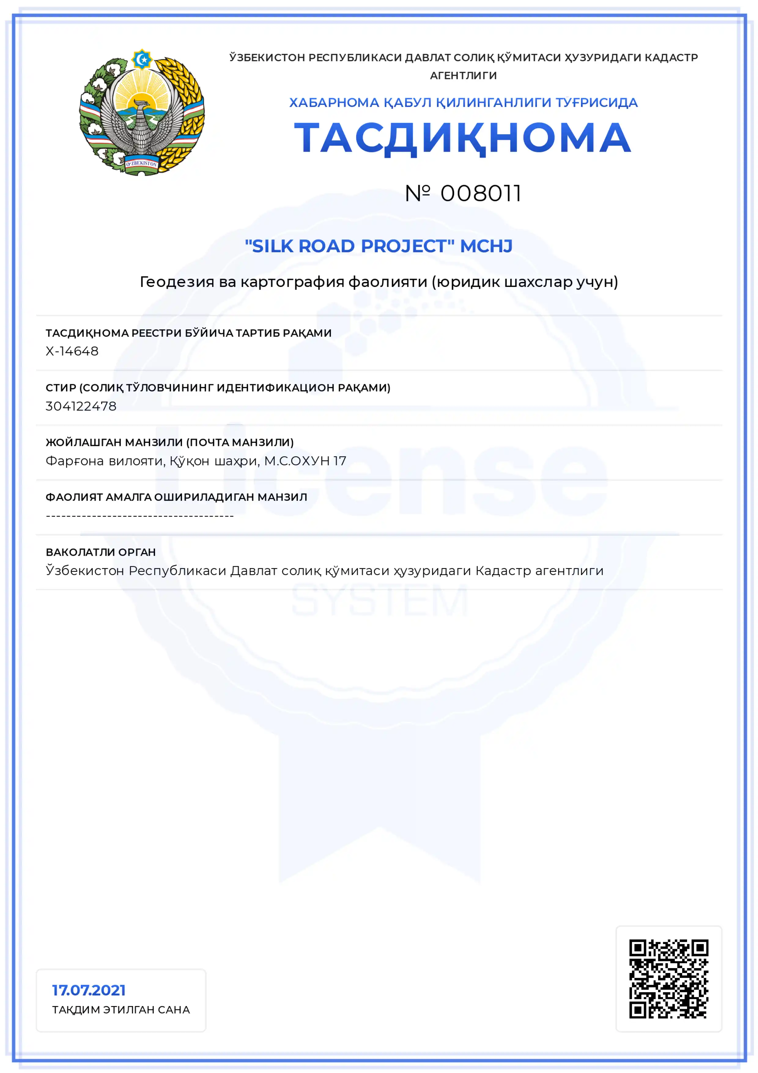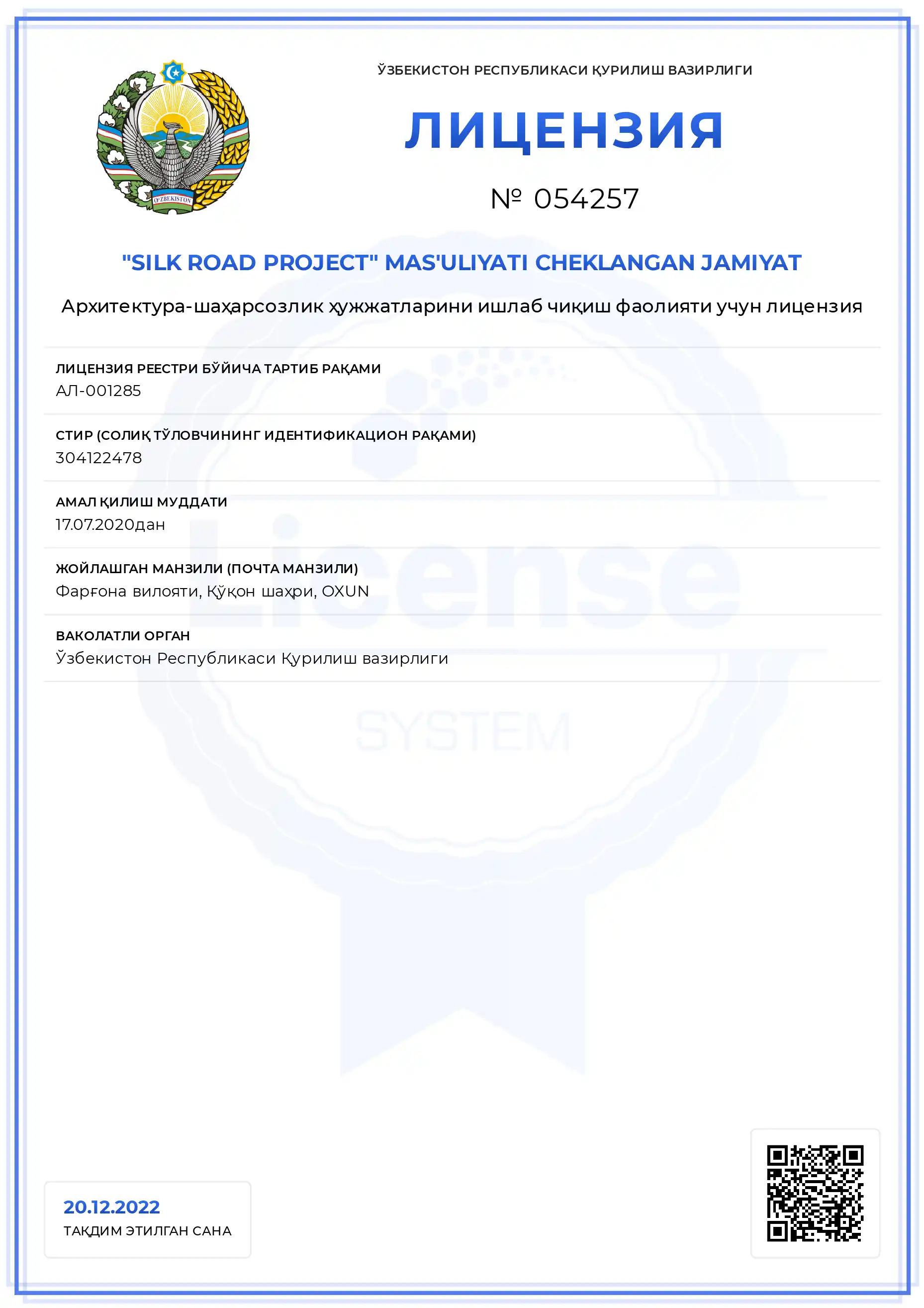 Barcha faoliyat turlarini amalga oshirish uchun tegishli Litsenziyalar mavjud.