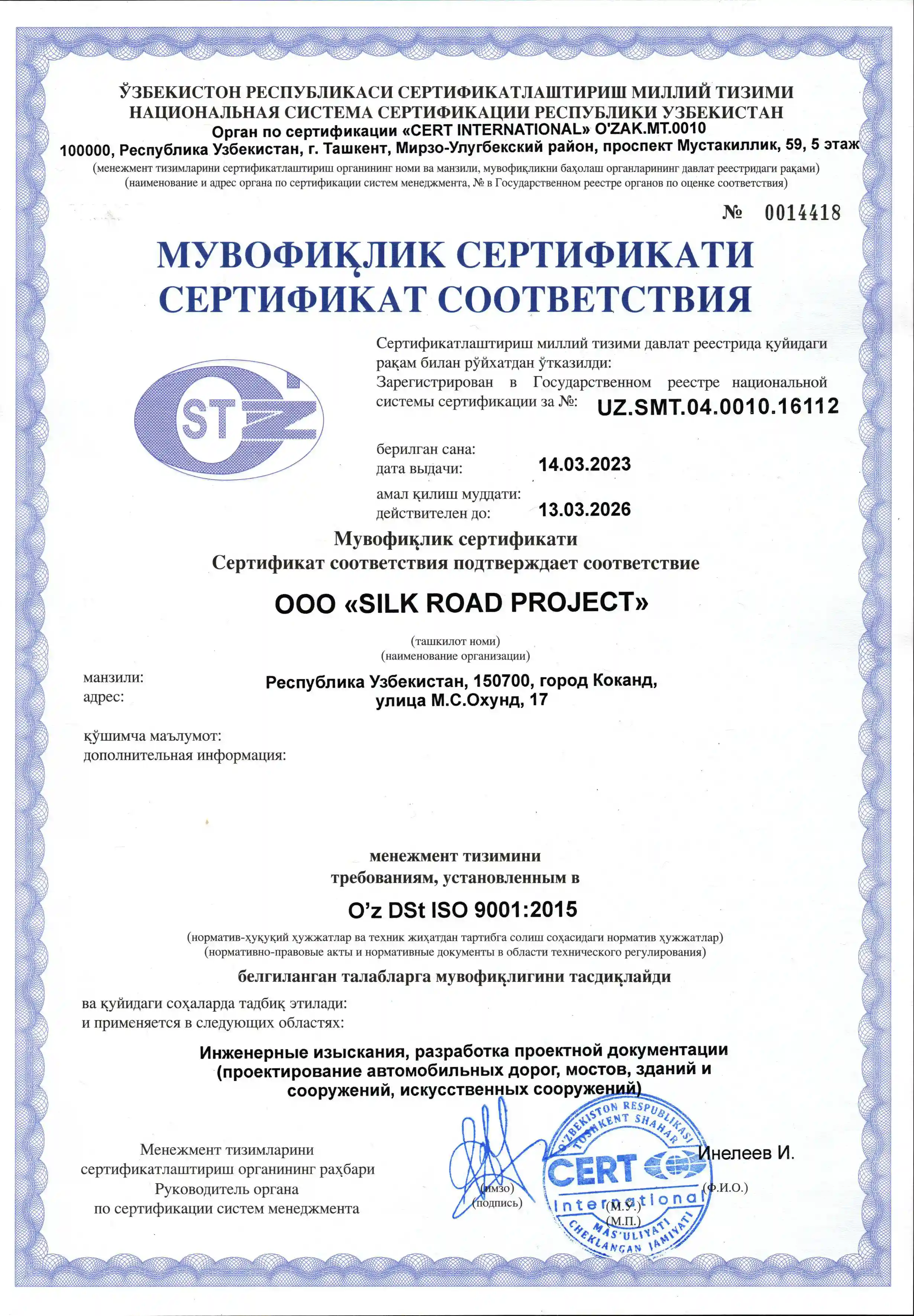Xozirgi davrda tashkilot Xalqaro axamiyatga ega boʼlgan M-41 “Bishkek-Dushanbe-Termiz” avtomobil yoʼlining 1459-1485 km qismini rekonstruktsiya qilish, koʼprik va boshqa yoʼl xoʼjaligi obʼektlarini loyixalashtirishda faol ishtirok etmokda.